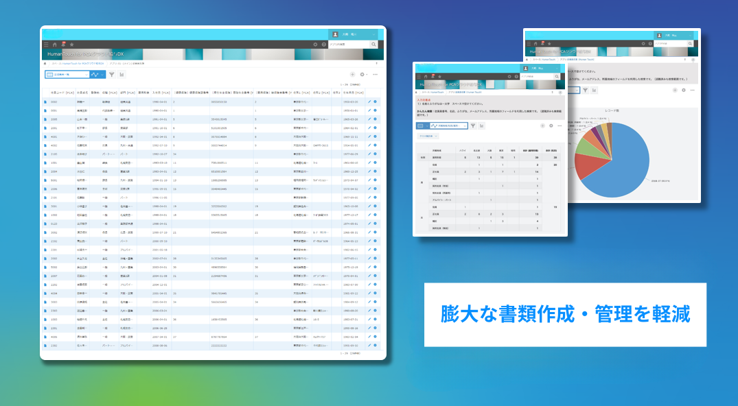人事・労務情報を※kintone上でまとめて管理することで、日々の運用負担を大幅に軽減し、精度の高い業務運用を実現します。