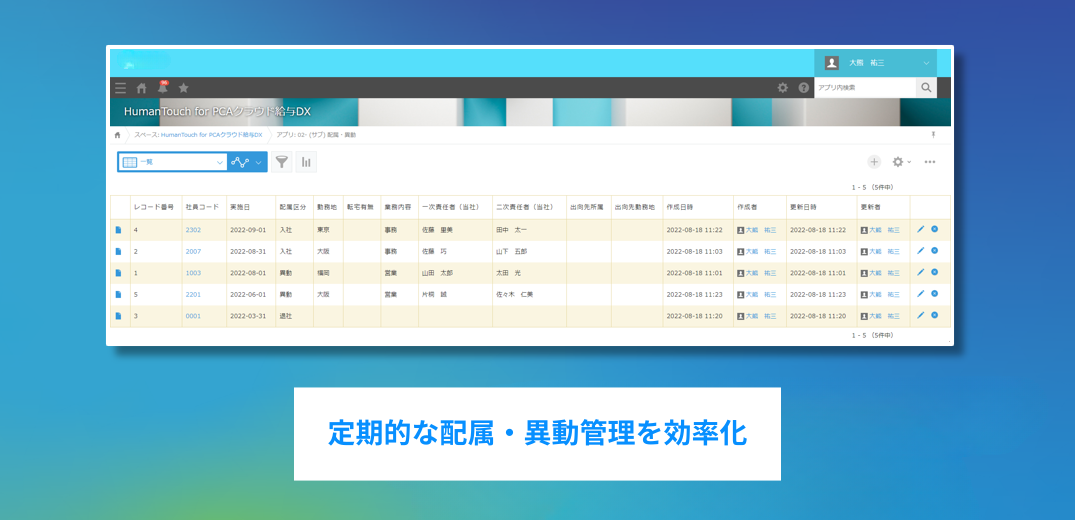 入社・配属・異動・出向・転宅。煩雑になりがちな情報を管理できます。