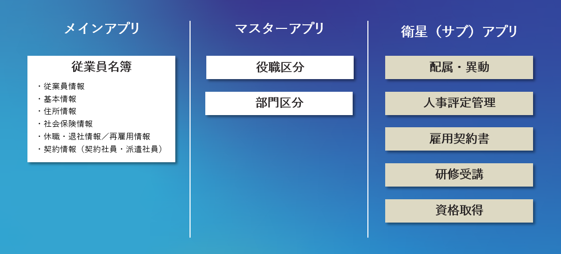 メインアプリとマスターアプリをベースに、衛星(サブ)アプリで機能を拡大できます。
