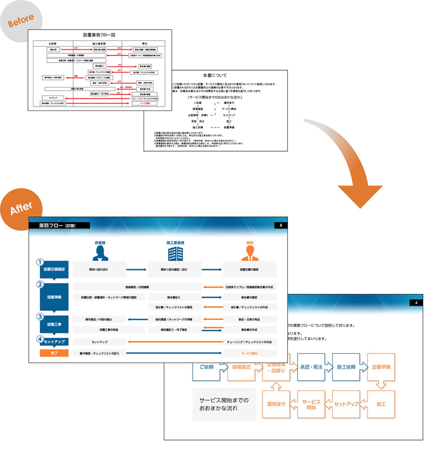 - 専門ライターが診断結果に基づき、構成の最適化と表現の見直しを実施。現場の負担を最小限に抑えながら、短期間で「使える」マニュアルへと刷新します。